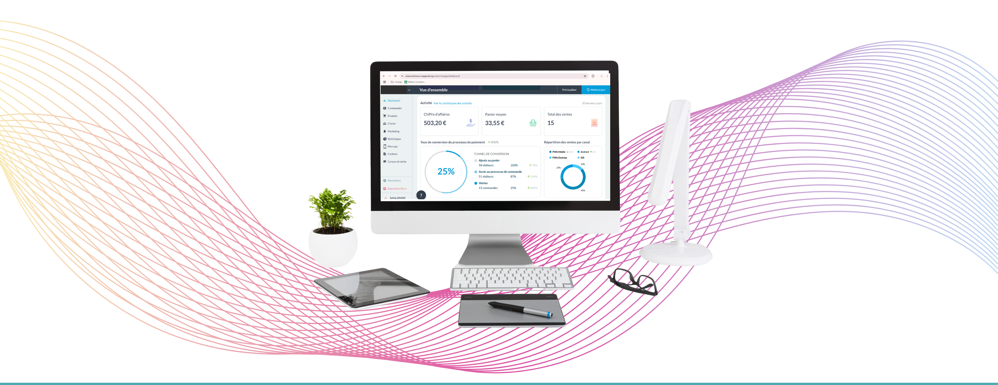 Tu ne seras jamais perdue dans ton Backoffice, il est pensé pour être facile. Tu pourras gérer, tes collections, tes produits, tes clients, tes promos, tes ventes et tu auras même accès à des stats simplifiées.